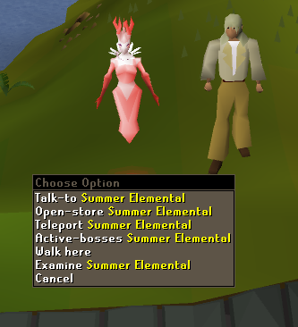 Come and join us for the Summer festivities! Speak to the Summer Elemental, located right outside of the home bank. From here, you can gather which of our many bosses in-game are active, and will give you points towards our exclusive shop!