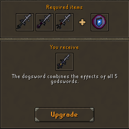 Last, but certainly not least, THE DOGSWORD - an immensely powerful combination of all five godswords, this weapon looks as amazing as it performs.