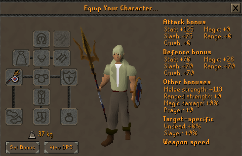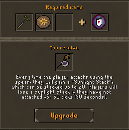 Sunlight Spear - A two handed spear with integral shield with the “Sunlight Stack” special attack with a MASSIVE 7x7 AoE