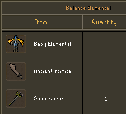 This dynamic boss is sure to give you a challenge. Defeat him for a chance to be rewarded with the Ancient Scimitar, the Solar Spear, or our new pet, the Baby Elemental!