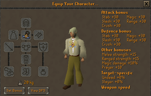 Amulet of the Monarchs - Combining the Amulet of Rancour and the Demonic Amulet, this regal necklace adorns you with the highest achievable buffs for the necklace slot.