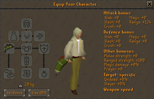 Dryogre Blowpipe - The pinnacle of ranged weaponry, this blowpipe is geared for ultra precision! You’ll need some consistent DoE runs to stack up ammunition for this beastly weapon.